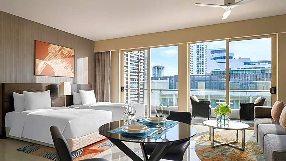 The pool with a view is a top feature of this suite. Guests can make meals in the kitchen that features a refrigerator, kitchenware, an oven and a microwave. The spacious suite features air conditioning, a washing machine, a balcony with city views as well as a private bathroom boasting a shower. The unit has 2 beds.